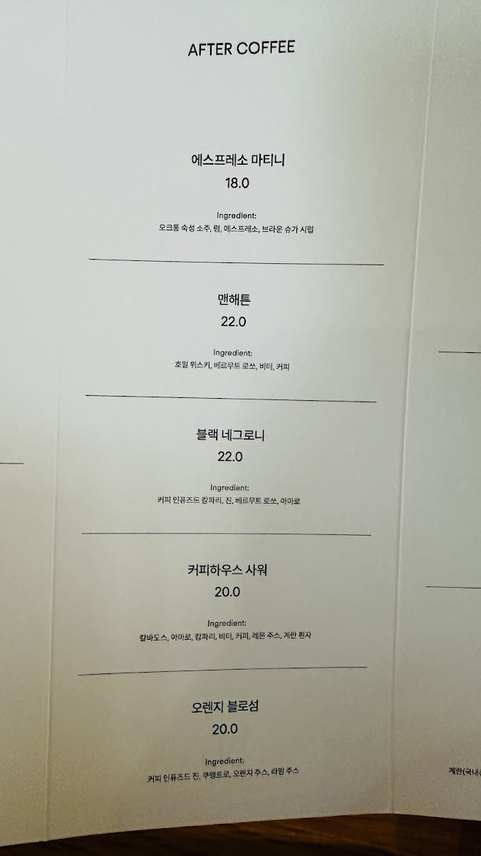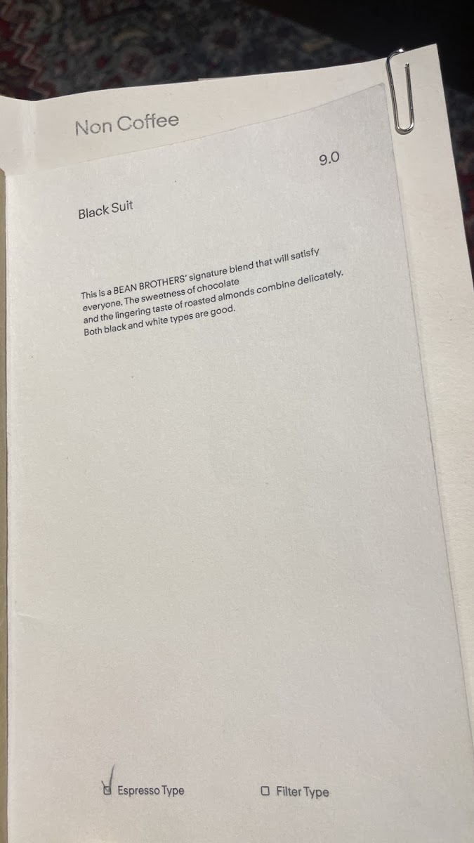 BEAN BROTHERS COFFEEHOUSE SEOUL Menu